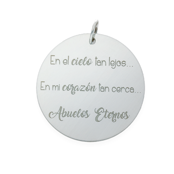 Abalorio chapa redonda para ramo de novia en Plata de Ley 925mm. para grabar nombres, frase, fecha....