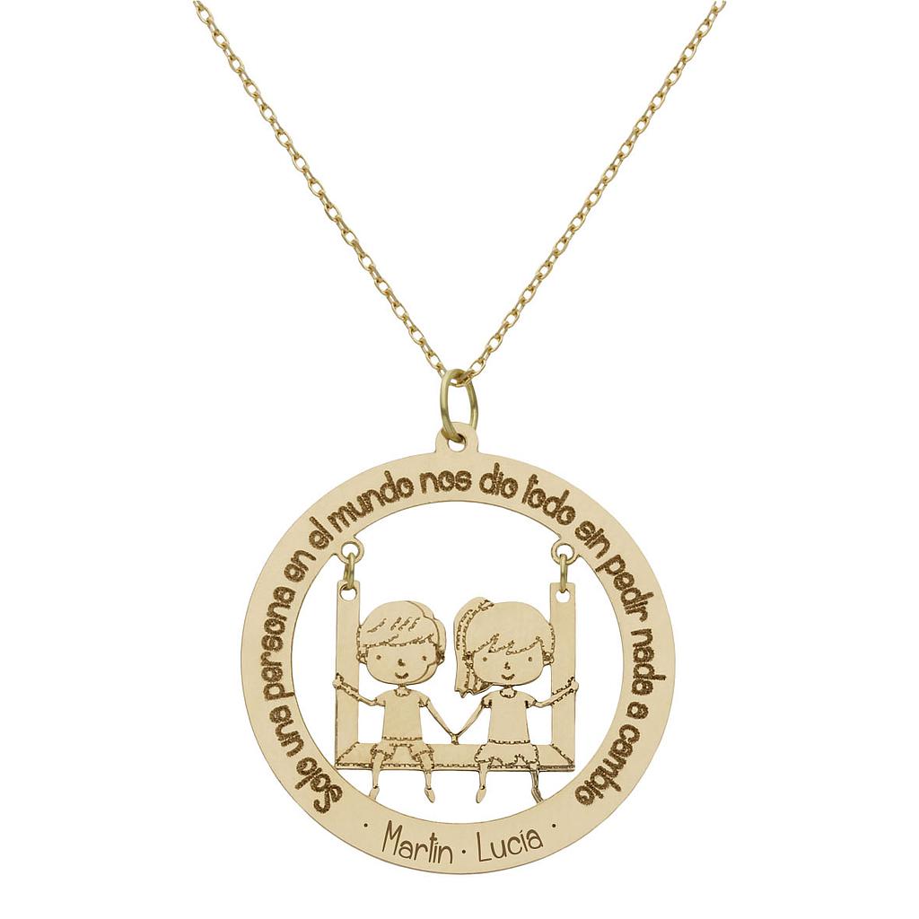 Gargantilla frase SOLO UNA PERSONA EN EL MUNDO NOS DIO TODO SIN PEDIR NADA A CAMBIO + niña + niño en Oro 18 Kl.