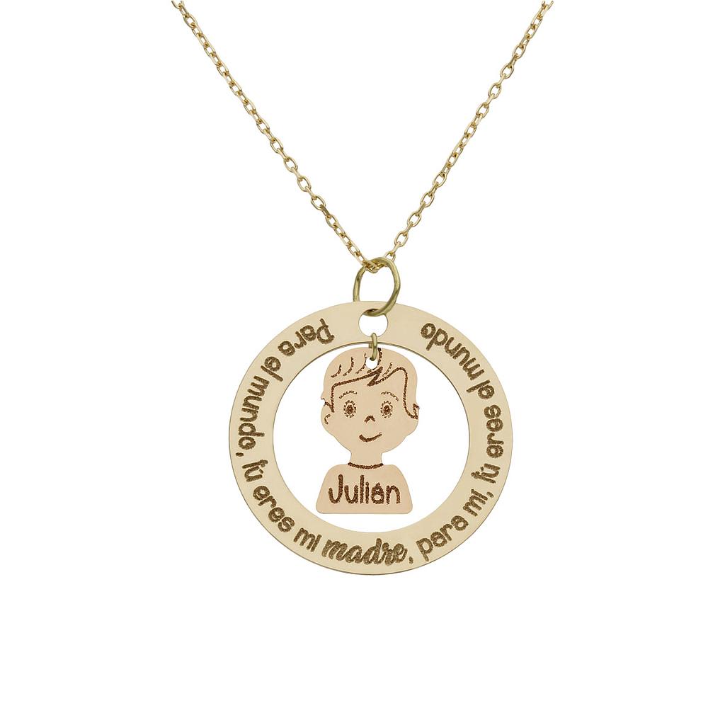 Gargantilla frase PARA EL MUNDO, TÚ ERES MI MADRE, PARA MÍ, TÚ ERES EL MUNDO + niño en Oro 18 Kl. personalizable con nombre.