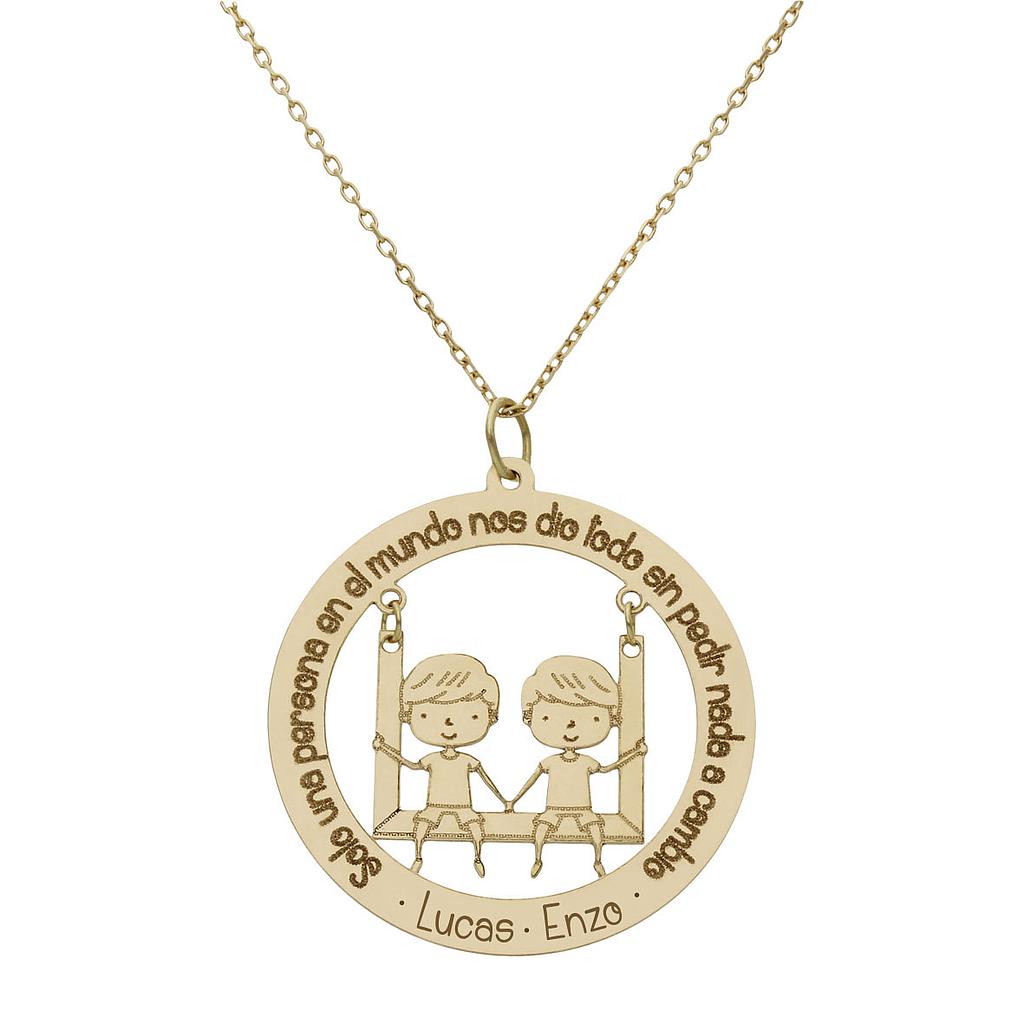 Gargantilla frase SOLO UNA PERSONA EN EL MUNDO NOS DIO TODO SIN PEDIR NADA A CAMBIO + niños en Oro 18 Kl.