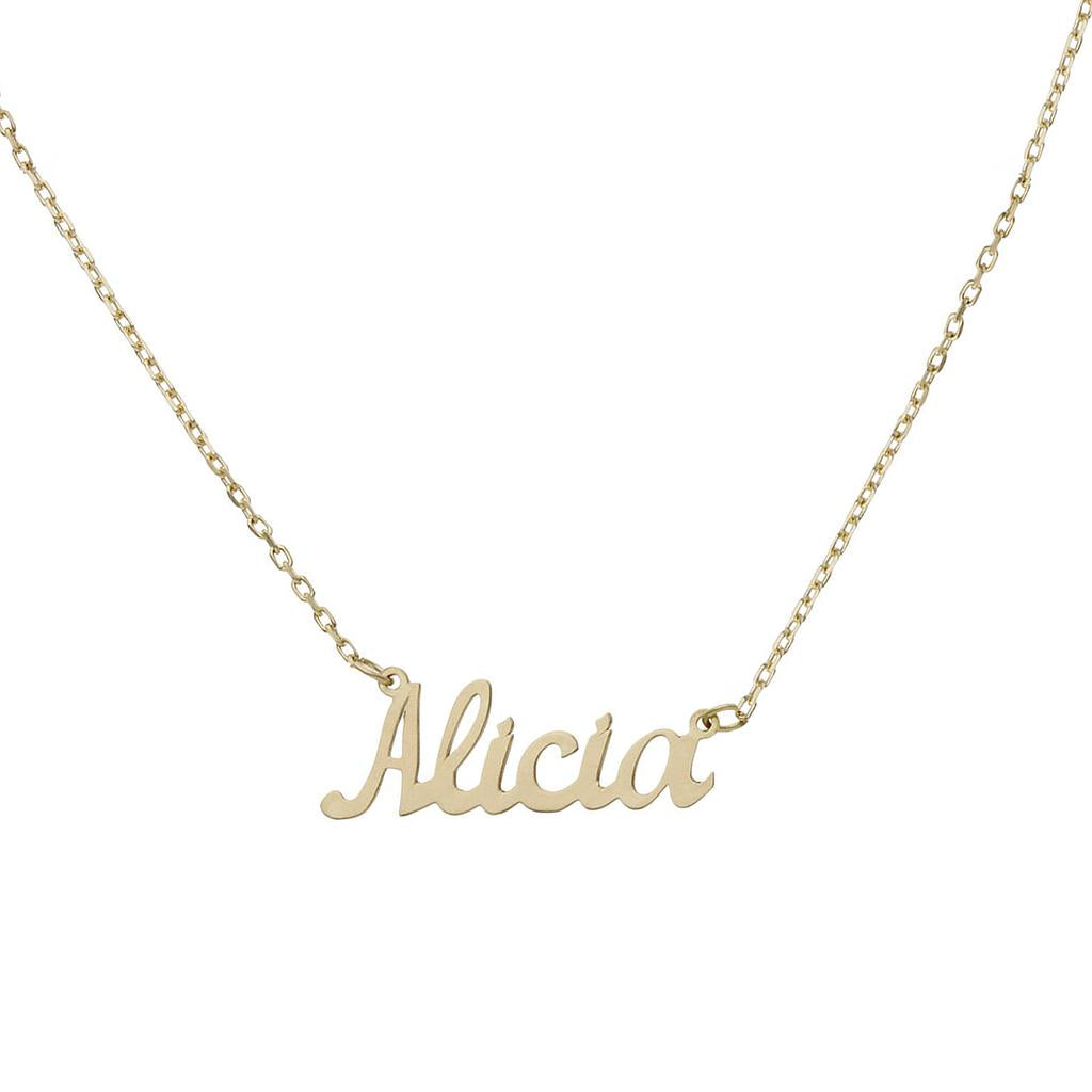 Gargantilla de nombre en Oro de 18 Kl. con letra inglesa pequeña.
