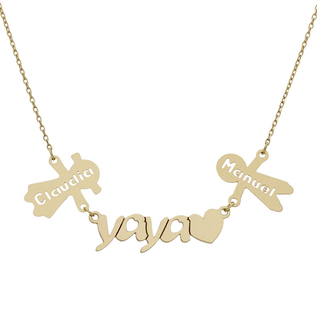 Gargantilla yaya + corazón + niños en Oro 18 Kl.