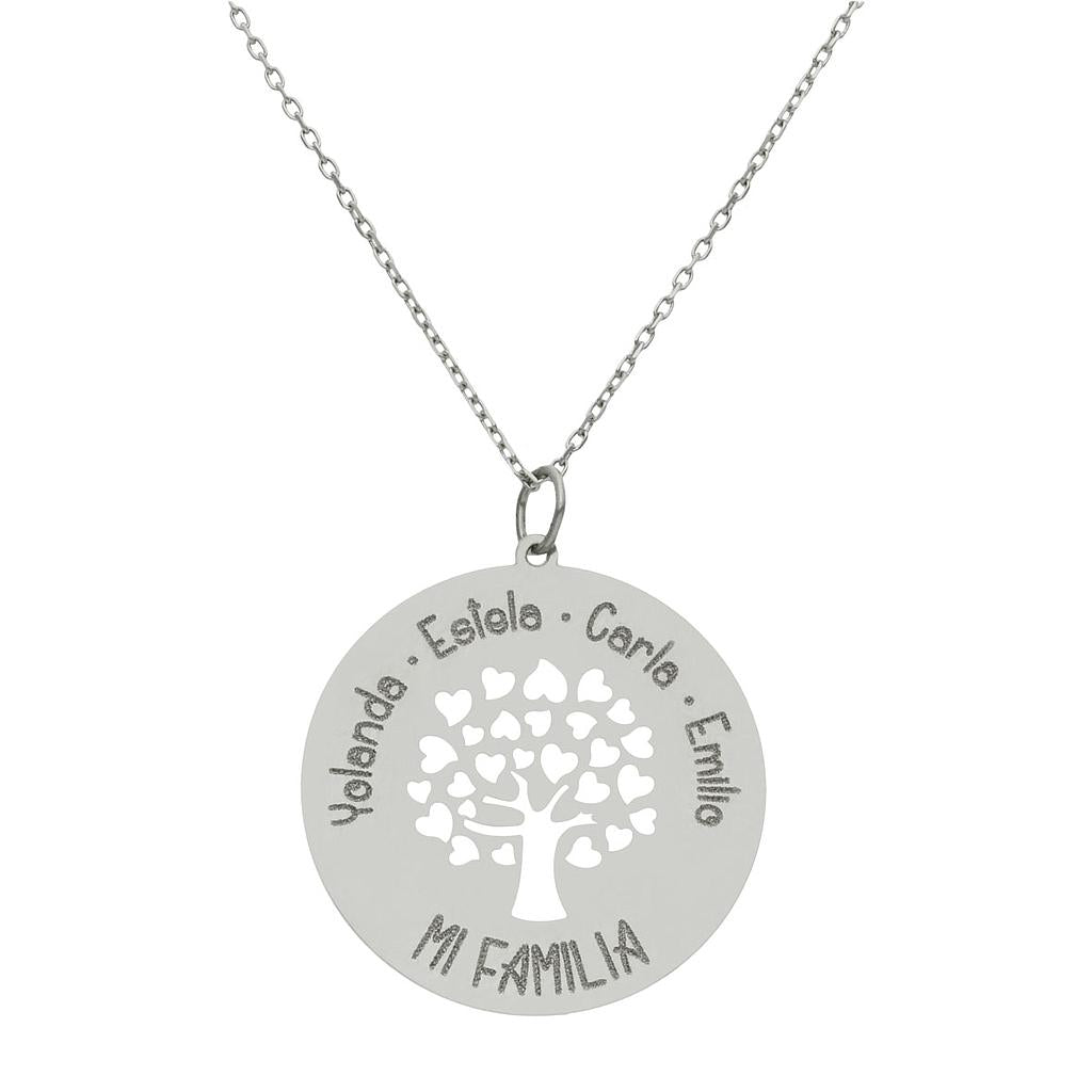 Gargantilla árbol de la familia en Oro blanco 18 Kl. personalizable con nombres o con frase.