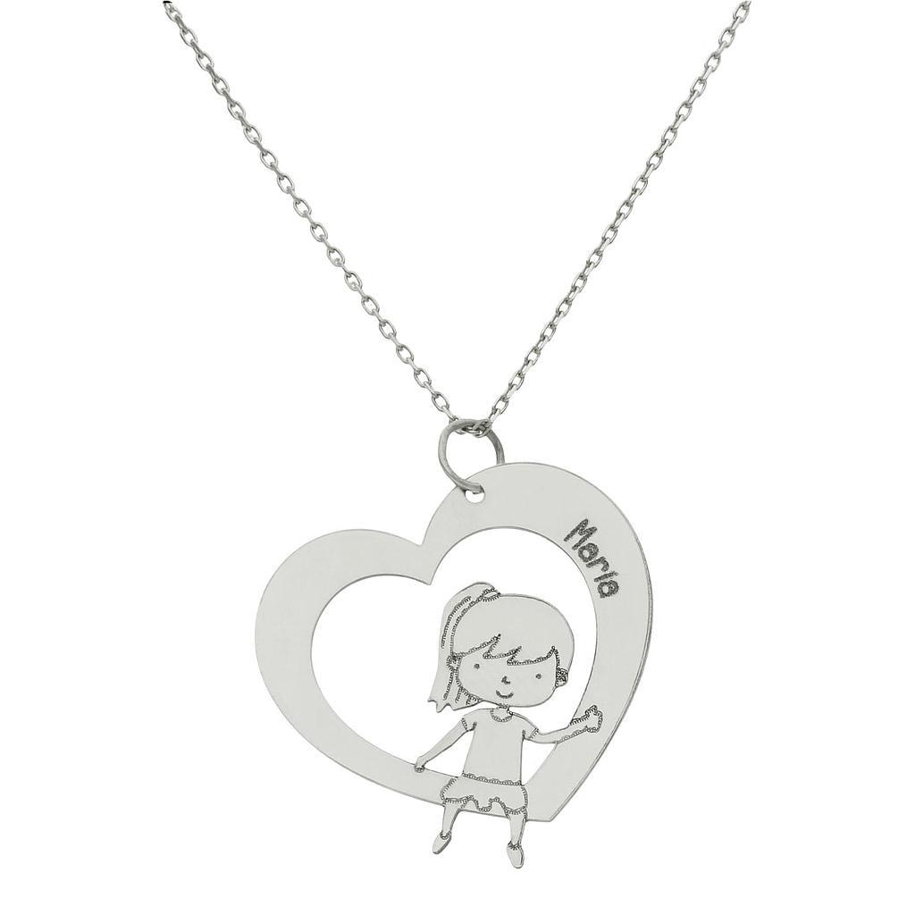 Gargantilla corazón + niña en Oro blanco 18 Kl. personalizable con nombre.