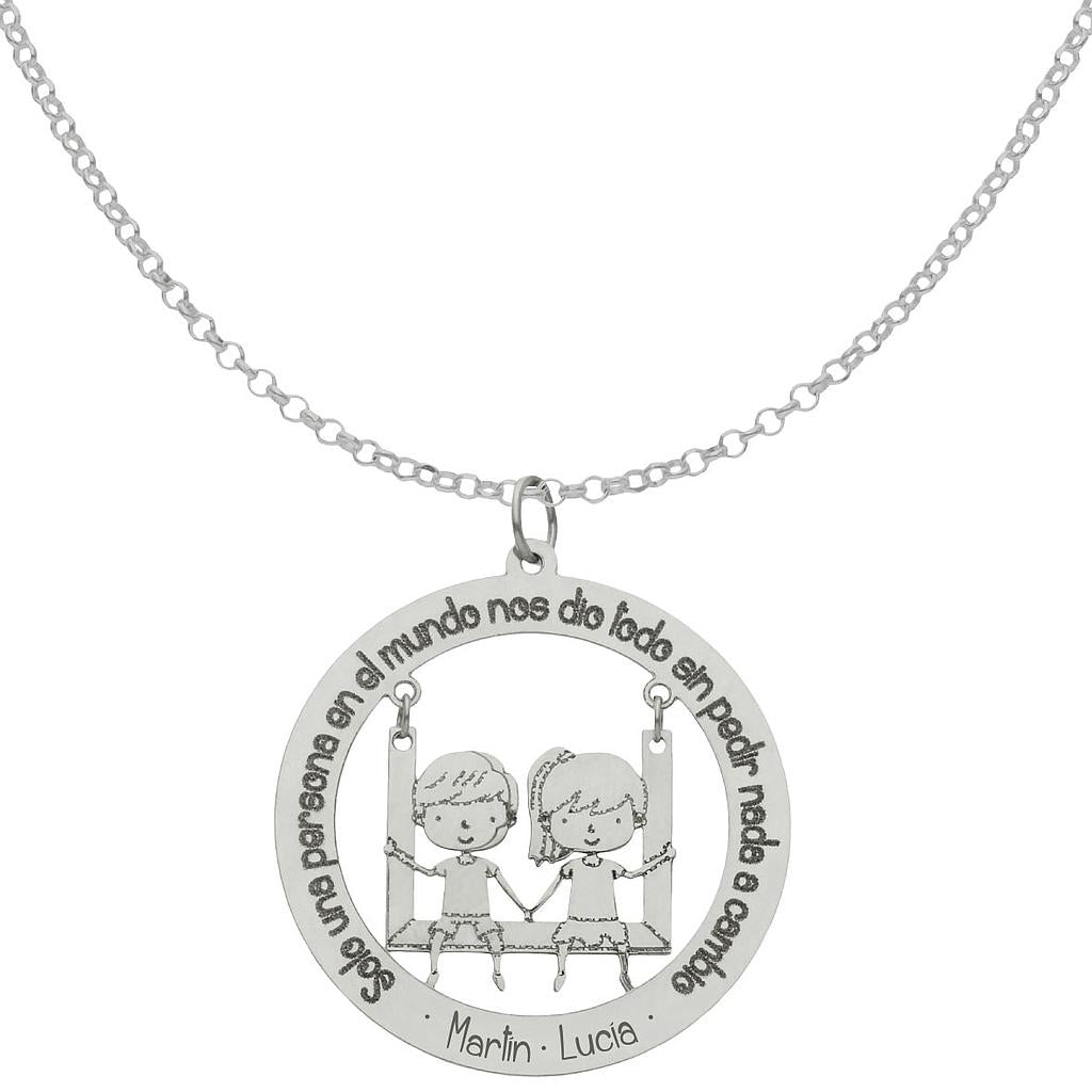 Gargantilla frase SOLO UNA PERSONA EN EL MUNDO NOS DIO TODO SIN PEDIR NADA A CAMBIO + niña + niño en Oro blanco 18 Kl.
