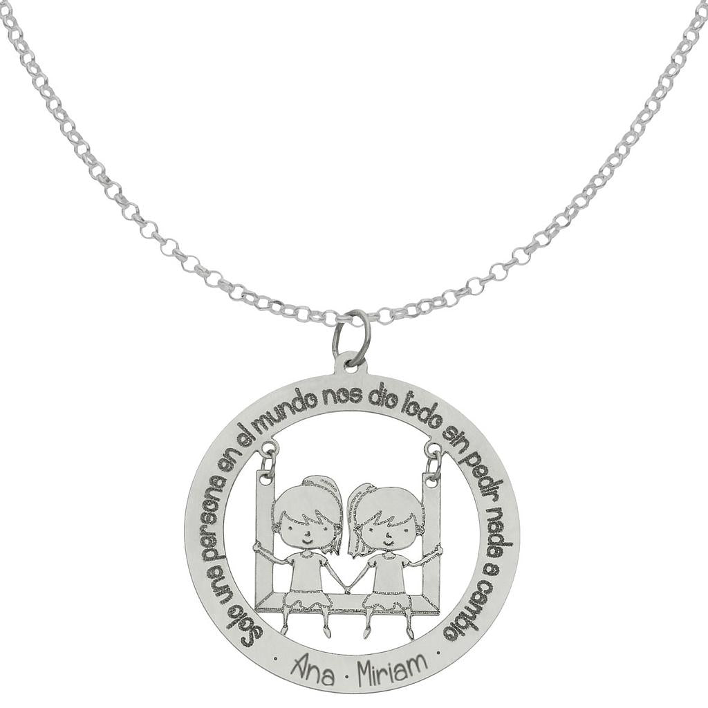 Gargantilla frase SOLO UNA PERSONA EN EL MUNDO NOS DIO TODO SIN PEDIR NADA A CAMBIO + niñas en Oro blanco 18 Kl.