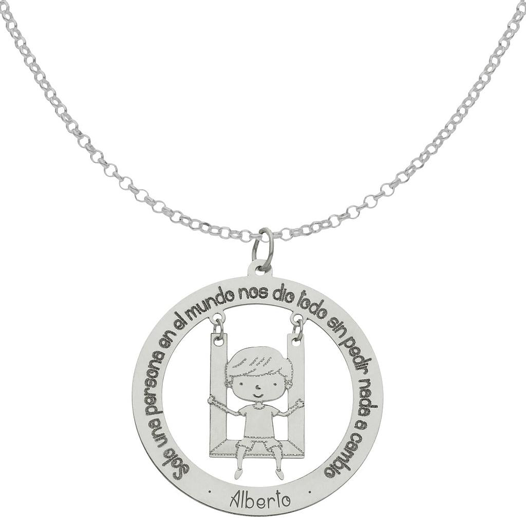 Gargantilla frase SOLO UNA PERSONA EN EL MUNDO NOS DIO TODO SIN PEDIR NADA A CAMBIO + niño en Oro blanco 18 Kl.
