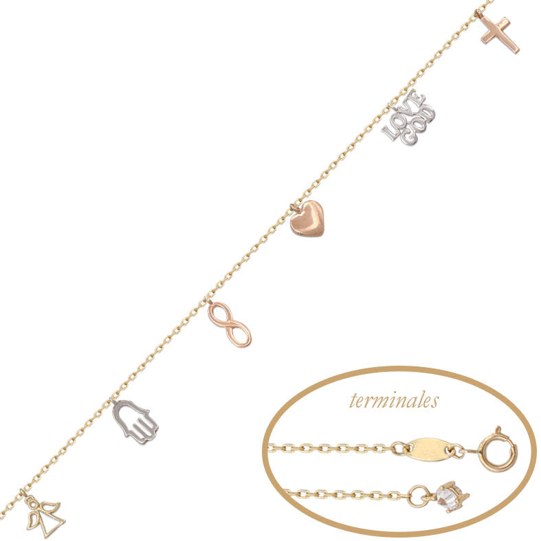Pulsera tricolor en Oro de 18 Kl. con abalorios: