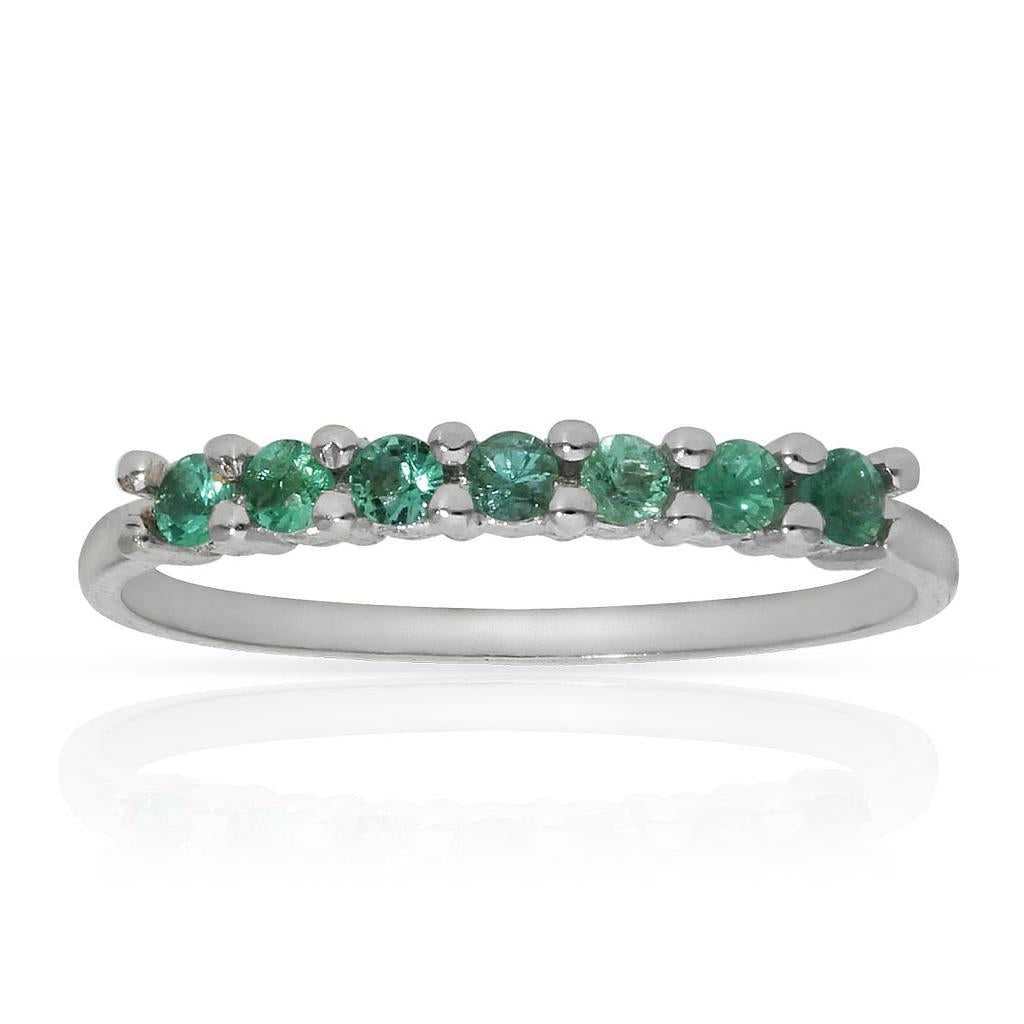 Sortija en Oro Blanco de 18 Kl. con 7 esmeraldas finas de 2.00mm.